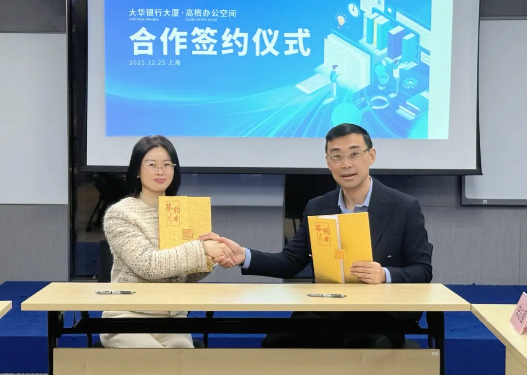 2025 年 12 月 25 日,陆家嘴金融城核心腹地暖意融融,一场备受行业关注的战略合作签约仪式圆满举行 —— 国内领先的办公空间解决方案服务商高格办公空间,与区域稀缺标杆资产大华银行大厦正式牵手,宣告双方将携手共筑高端商务生态。上海华新置业有限公司总经理金凯生与高格办公空间副总裁周兴强亲临现场,分别分享了合作初心与未来愿景,为这场 "优质地标 + 专业运营" 的强强联合,拉开了共赢新篇的序幕。